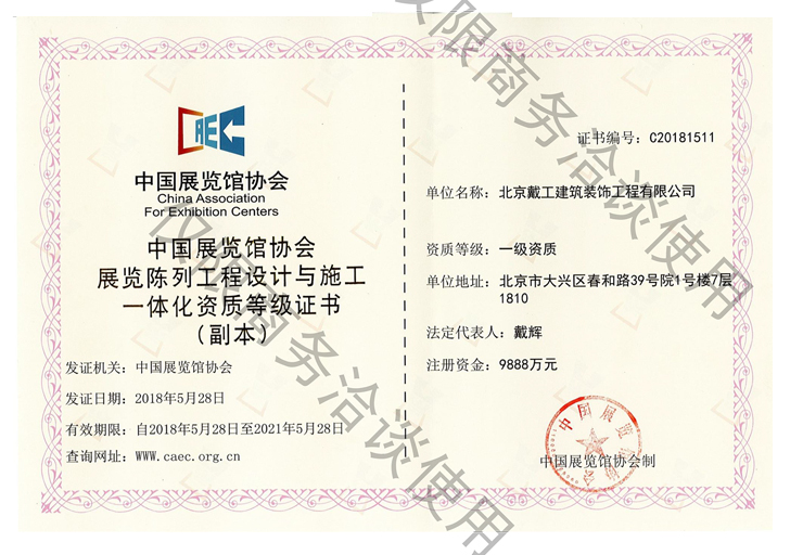 戴工集團現為中國建筑裝飾協會、中國室內裝飾協會、北京市建筑業(yè)聯合會會員、北京室內裝飾副會長單位、北京市建筑裝飾協會的理事會員單位,誠信五星級單位、質量AAA級單位。